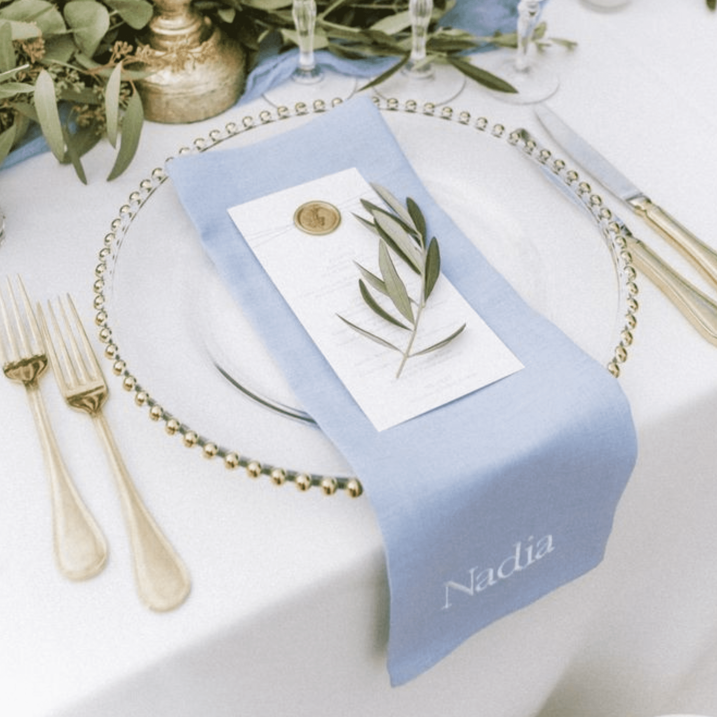 Eterniza o teu casamento com a melhor lembrança que podes oferecer um guardanapo personalizado com iniciais dos noivos, o logótipo do casamento ou nome do convidado. Garantidamente que não vai para a gaveta.