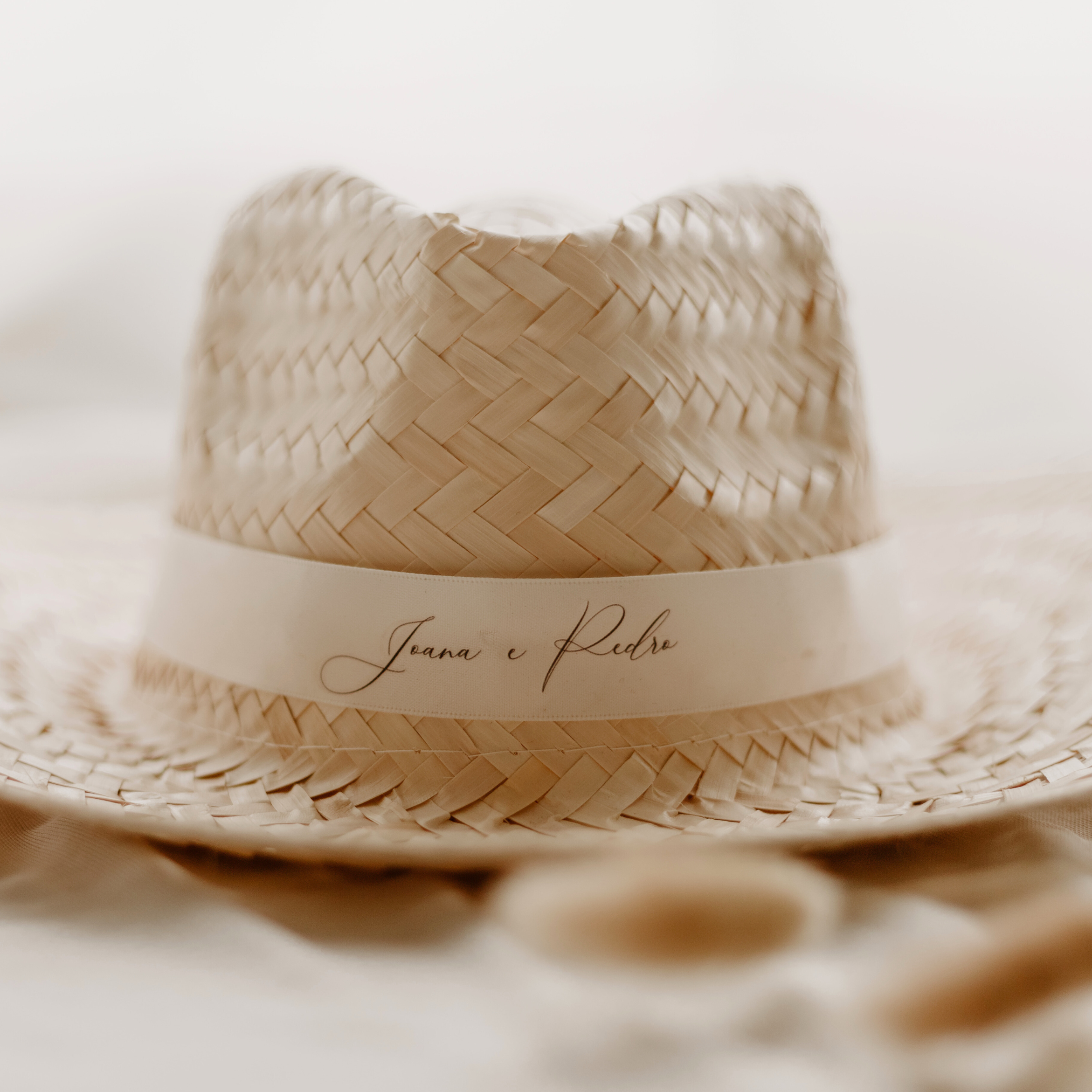 Quando o casamento acontece ao ar livre ou nos meses mais quentes, um chapéu personalizado com nome dos noivos é uma lembrança original e prática que vai proteger com estilo – e surpreender com carinho.